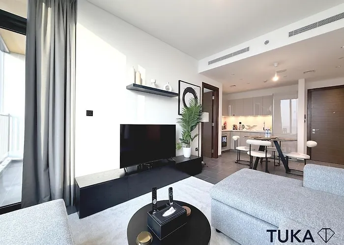 The 75 m² apartment lies 10 minutes by car from the downtown Dubai Mall. The massive Dubai Fountain is 3.8 km from the property.